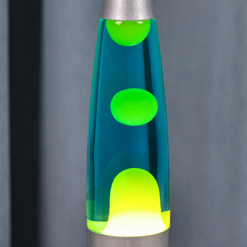 13 tums blå original lavalampa, men ett uttryck för en livsstil. I slutet av en hektisk dag, slå på den och se den gröna vaxbollen sakta flyta i den blå vätskan, som om tiden i sig har saktat ner. I detta ögonblick lämnas världen med inget annat än lugn och skönhet.