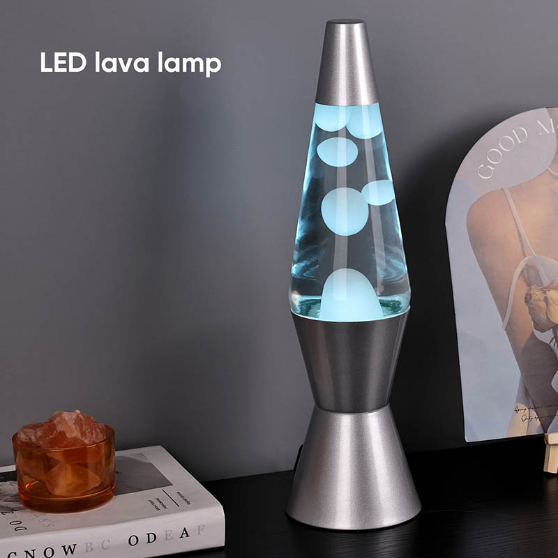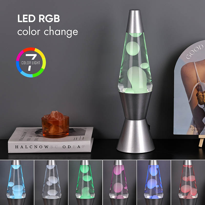 15 tums RGB LED lavalampa har 7 färgskiftningar i botten. färgen är vit med lavan.