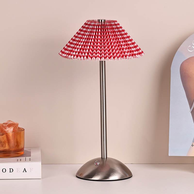 Varje detalj i detta 台灯 har noggrant utformats för att ge både estetisk tilltal och funktionell excellens. Den röda och vita nylonlampskärmen, med sin veckade design, framkallar en känsla av vintage charm. De livliga färgerna kommer säkert att lägga till en pop av personlighet i ditt utrymme, vilket gör det till en kontaktpunkt i alla rum.