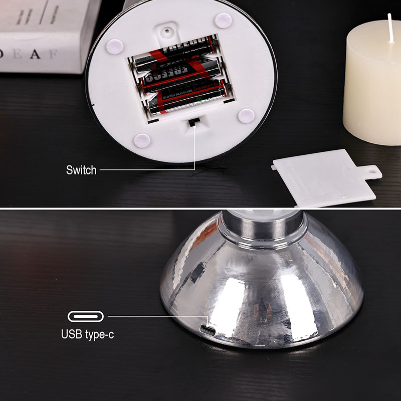 3 AAA batteriDet nydesignade Cloudy Night Light med Candle Shade har ett dekorativt ljus på toppen som kan tändas för belysning, en transparent glasflaska i mitten som innehåller en vätska med ett specifikt formelmaterial. Inuti vätskan ser det ut som moln och dimma som svävar på himlen, mycket likt ett simuleringsarbete. Botten är en metallbas som kan användas med 3AAA-batterier. Molnig nattlampa med ljus är mycket lämplig för inomhus- eller hotelldekoration, och kan även placeras i barns sovrum, med en bra helande effekt på humöret