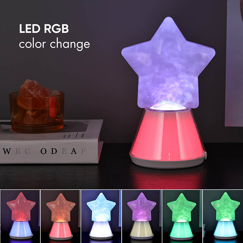 Molnigt RGB-nattljus med stjärnskugga är halvtransparent, vilket lägger till designens eteriska kvalitet. Det är tillverkat av högkvalitativa material som smälter sömlöst med glasets topp och skapar en sammanhängande och harmonisk look.