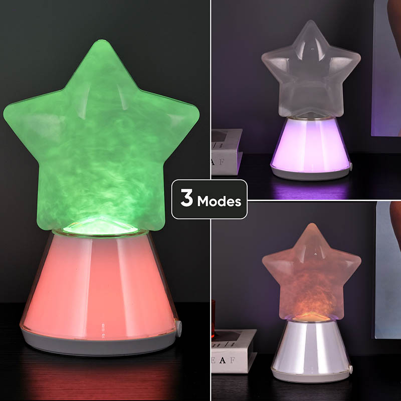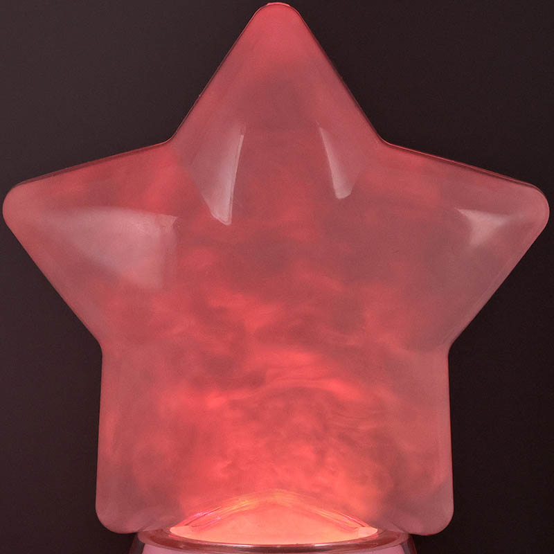 Våra dekorativa lampor har en femspetsig stjärnform, inspirerad av de blinkande stjärnorna som prickar natthimlen. Men dessa stjärnor är inte bara dina vanliga himmelkroppar-de har fått en bländande uppgradering med tillägget av glasuppsluten vätska som efterliknar molnens utseende.