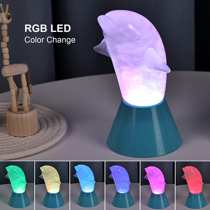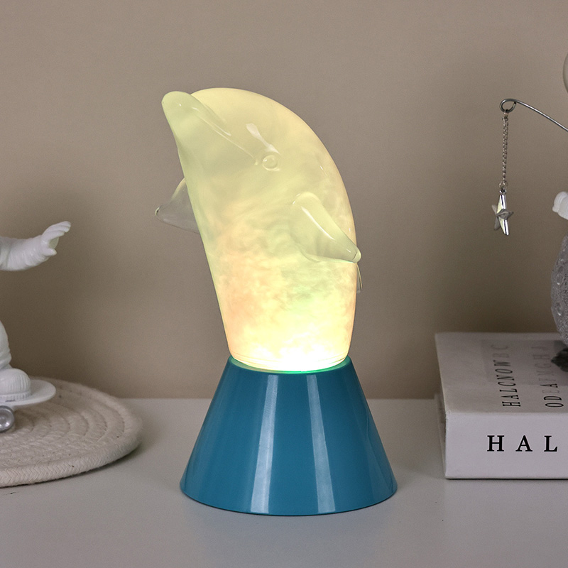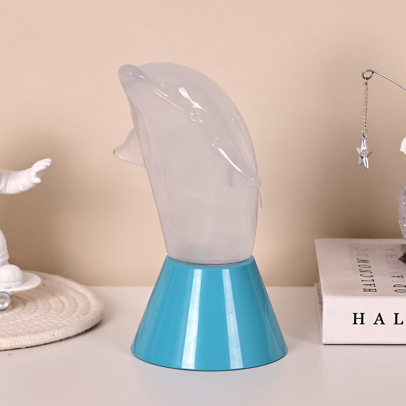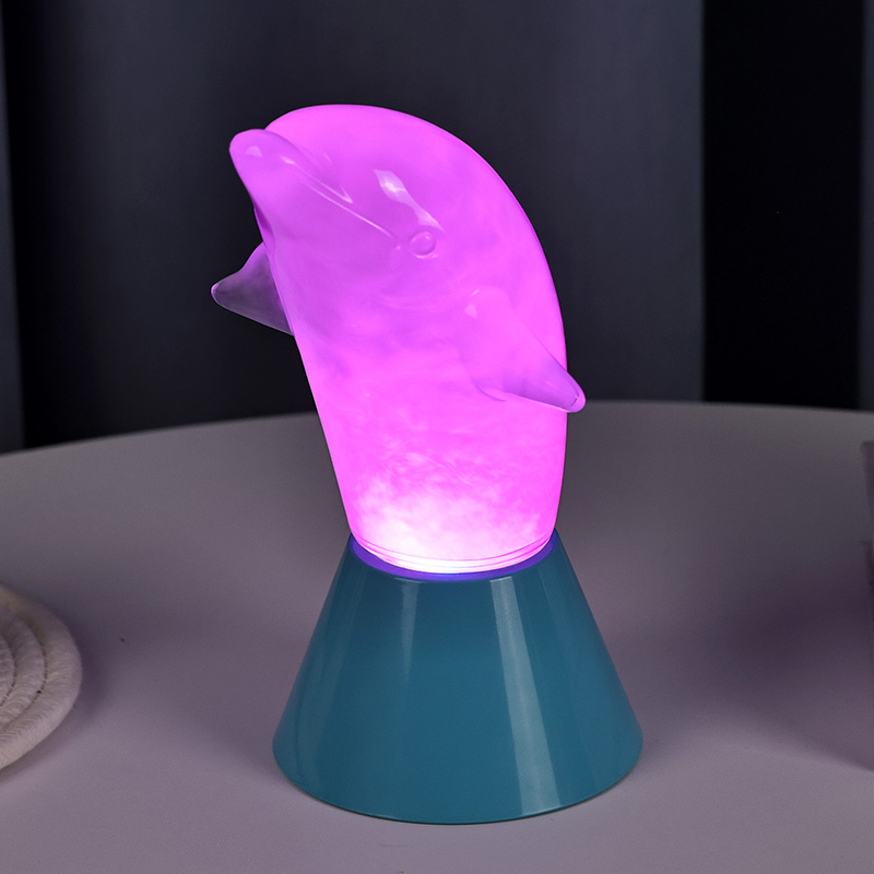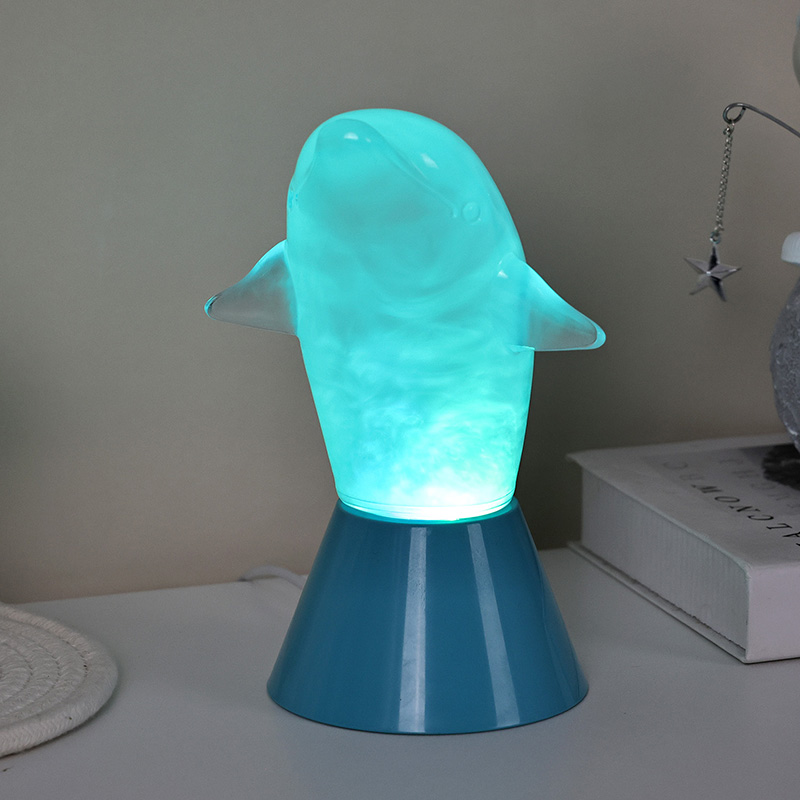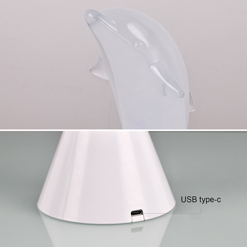 Dolphin Kid RGB Nigh Light är designad i form av en söt delfin, med mjuka linjer och utsökta detaljer som perfekt återställer delfinernas smidiga hållning. Inuti det genomskinliga delfinskalet liknar den dimmiga strömmande vätskan vågor i havet, som sakta svajar och skapar en fridfull och mystisk atmosfär. Varje gång du tittar på den här lampan känns det som att du befinner dig i havets djup och upplever naturens oändliga charm