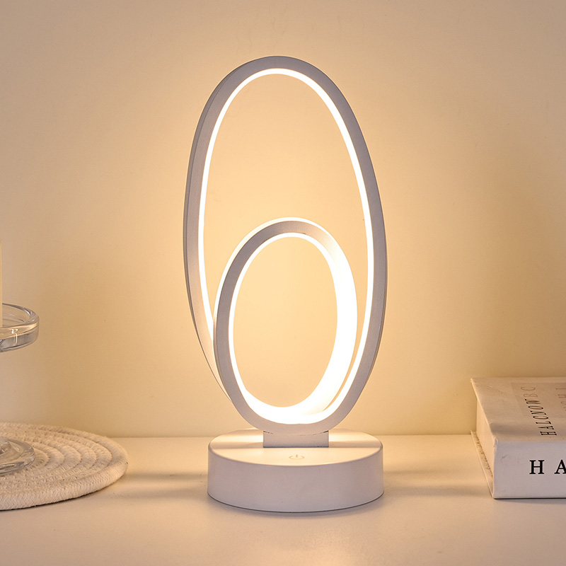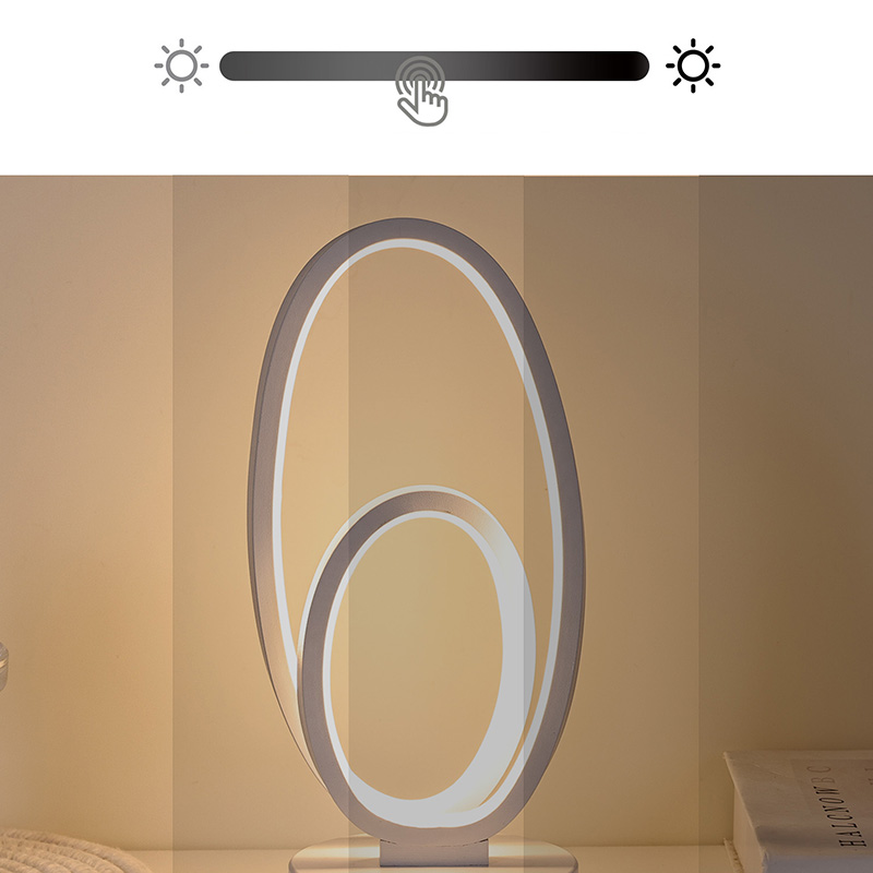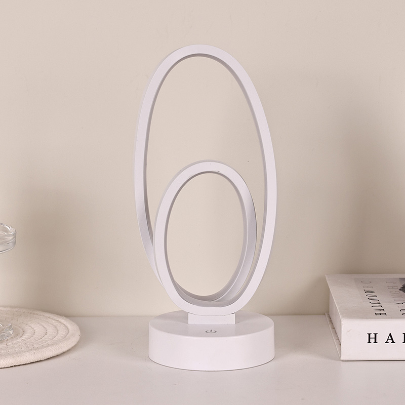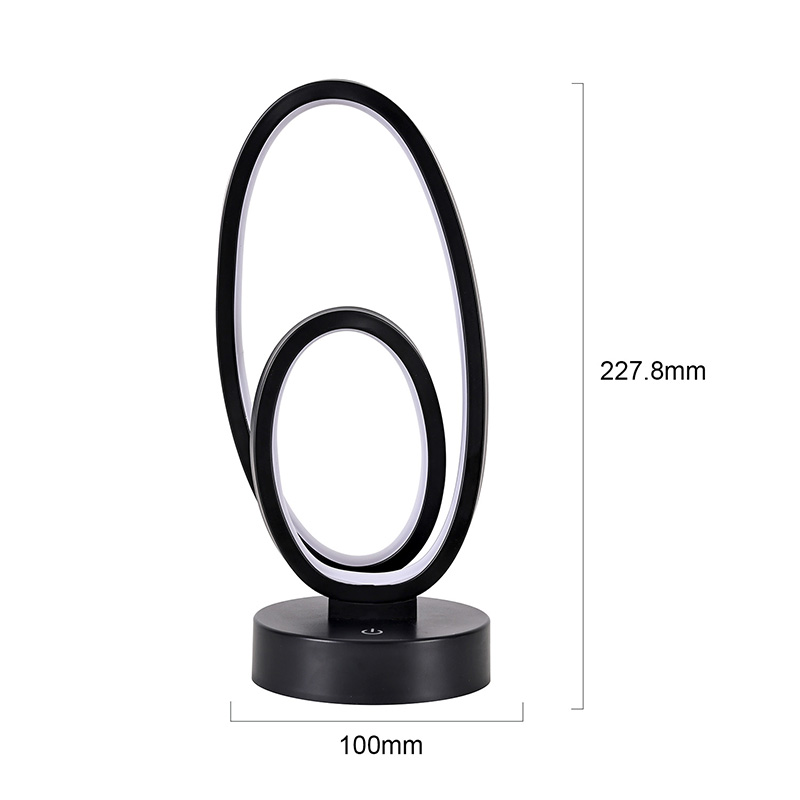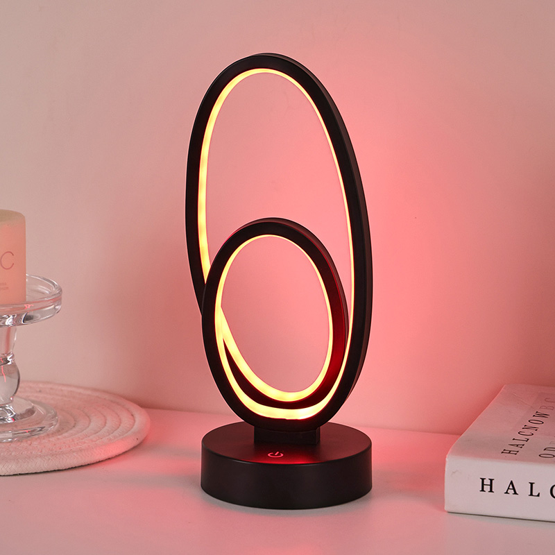 44*33*H23,5cmDouble Circular Ring Shade RGB-bordslampa har en design med dubbla ringar, med eleganta konturer som skisseras av minimalistiska linjer. Genom att kombinera metall och högkvalitativ plast, har den exceptionell struktur och en delikat touch. Förutom att det är ett belysningsverktyg