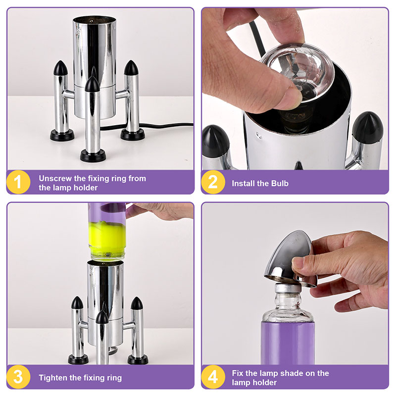 Oavsett om den är en leksak för barn eller en dekoration för vuxna, kan denna raketformade lila vattengula vaxlampa bli en ljuspunkt i ditt liv. Dess unika design Med sin förtrollande utstrålning ger den inte bara nöje och vitalitet till din hemmiljö, utan blir också en samlingspunkt för samtal mellan dig och din familj och vänner.