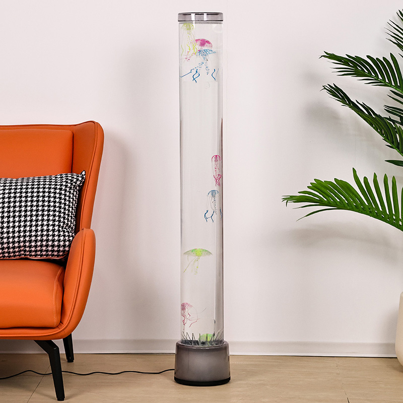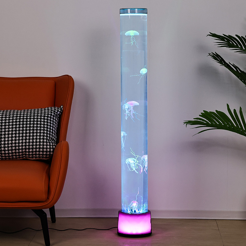 39,5*39,5*115cmLarge RGB Floor Jellyfish Lamp är en kreativ heminredning som blandar modern teknik med naturlig estetik, med drömska ljuseffekter och naturtrogen manetdesign