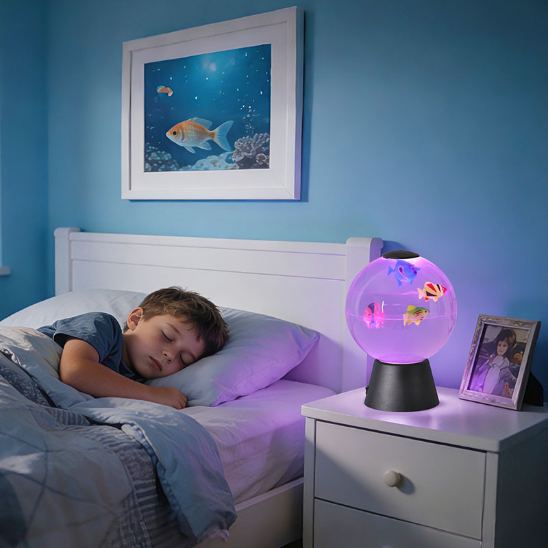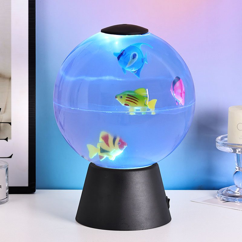 Designad som ett mångsidigt dekorativt föremål, tjänar denna animerade fiskklot flera syften: en lugnande