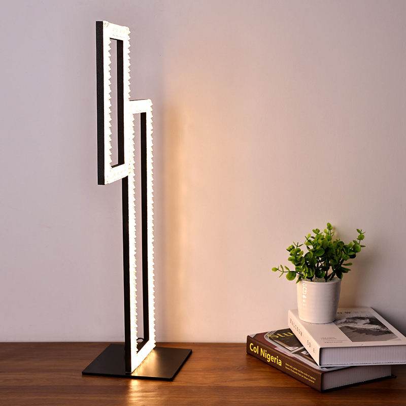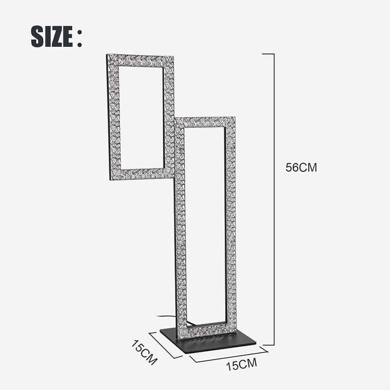 Denna unika skrivbordslampa är som ett utsökt konstverk. Den är genialiskt sammansatt av två rektangulära lampkroppar, som uppvisar formen av att slockna, enkel men ändå atmosfärisk. Användningen av kristallmaterial gör att ljuset avger briljant ljus under brytning, vilket ger en touch av fantasi och lyx till ditt utrymme. Oavsett om det placeras på skrivbordet i arbetsrummet eller vid nattduksbordet i sovrummet, kan det bli en vacker natur som följer dig genom varje lugn stund