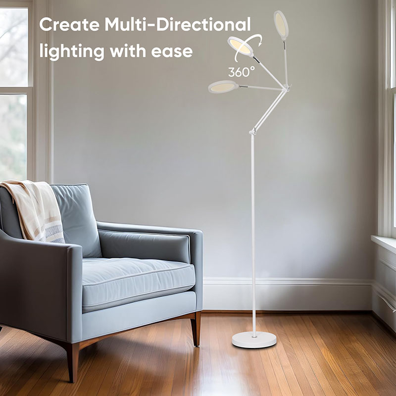 Från den mysiga läsningskroken till det livliga hemmakontoret, från den eleganta matsalen till det lugna sovrummet, är vår flerfaldiga golvlampa ett mångsidigt tillskott till alla rum. Dess förmåga att anpassa sig i storlek, vinkel, färgtemperatur och ljusstyrka gör den till den ultimata belysningslösningen för olika utrymmen och aktiviteter. Det är en lampa som växer med dina behov, utvecklas för att möta utmaningarna med modernt boende samtidigt som du förbättrar ditt hems skönhet och funktionalitet.