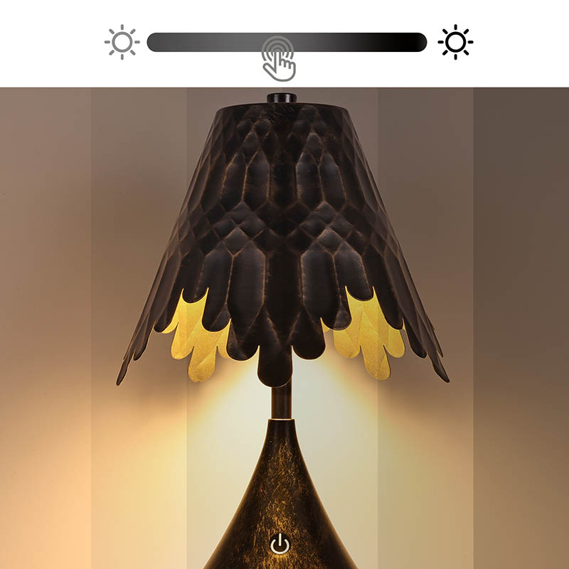 Kärnan i vår skrivbordslampa är dess eleganta metallparaplyskugga. Tillverkad av högkvalitativa, hållbara metaller som aluminiumlegering eller rostfritt stål, ger skuggan en elegant, modern look samtidigt som man säkerställer stabilitet och livslängd. Paraplystrukturen möjliggör bred och till och med lätt distribution, vilket minimerar skuggor och bländning, perfekt för uppgifter som att läsa, skriva eller detaljerat arbete. Skuggan är justerbar, vilket gör att användare kan vinkla ljuset exakt där det behövs, förbättra mångsidigheten och komforten.