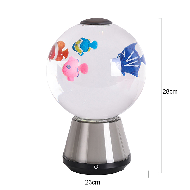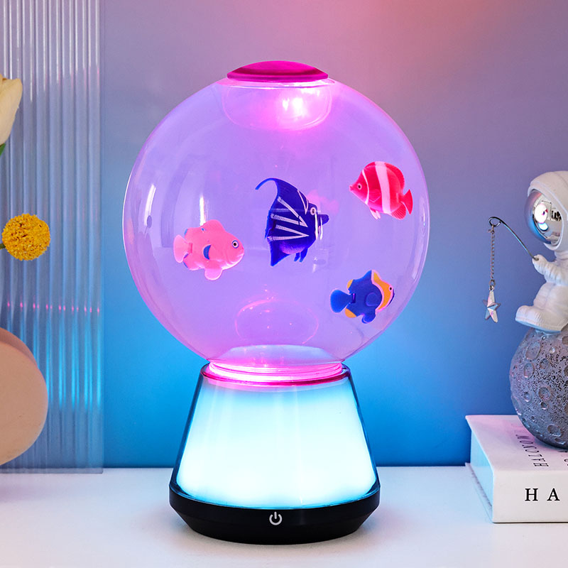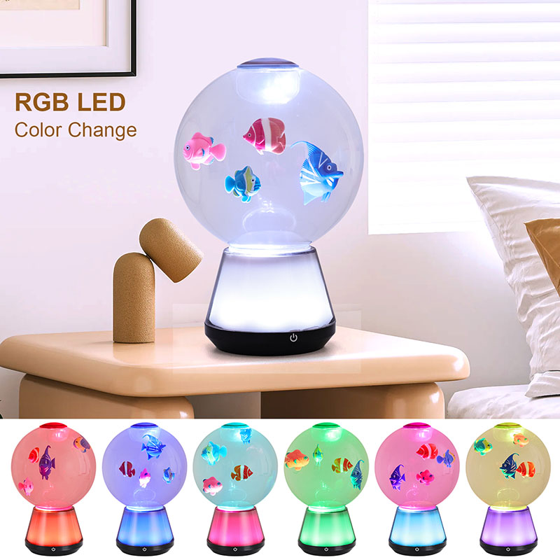 Det som verkligen skiljer denna lampa är dess halvtransparenta, färgskiftande bas. Tillverkad av högkvalitativ plast med frostad yta, innehåller basen ett kraftfullt men energieffektivt LED-system som cirkulerar genom ett spektrum av livfulla nyanser – inklusive havsblått, djuplila, korallrosa, aquagrönt och mjukt vitt. Ljuset diffunderar uppåt genom tanken och kastar ett eteriskt sken som reflekteras från de rörliga figurerna och vätskan, vilket skapar ständigt föränderliga mönster av ljus och skugga. Den halvgenomskinliga designen gör att färgerna mjukt strålar utåt och förvandlar hela lampan till en 360-graders omgivande ljuskälla som förvandlar ditt rums atmosfär.