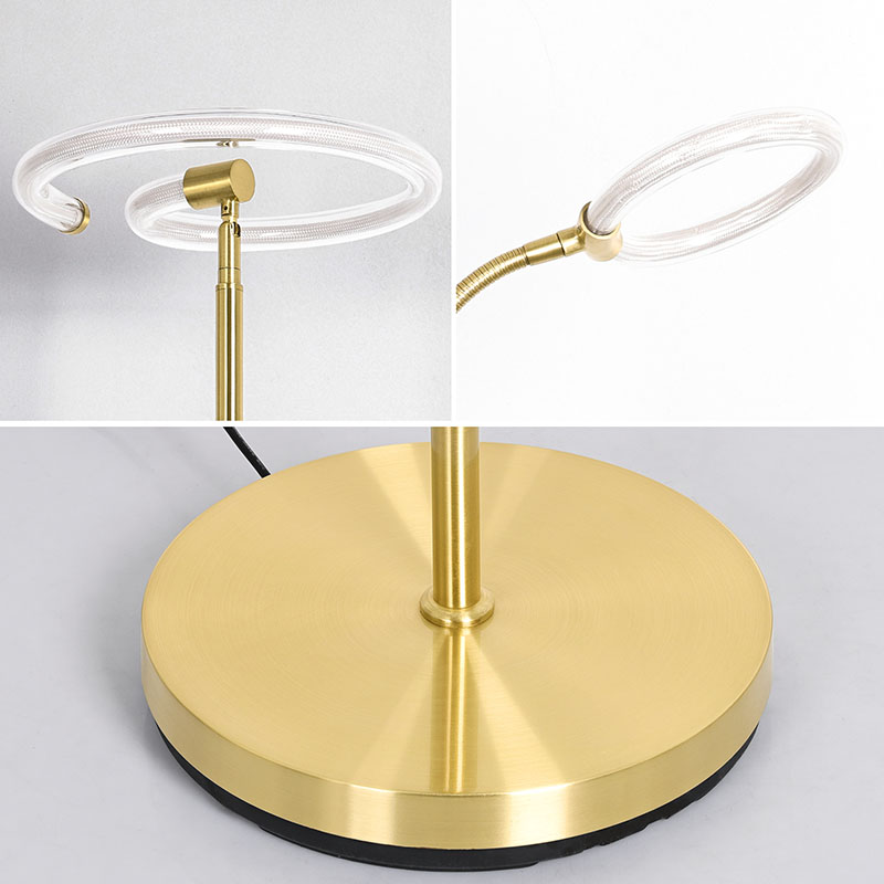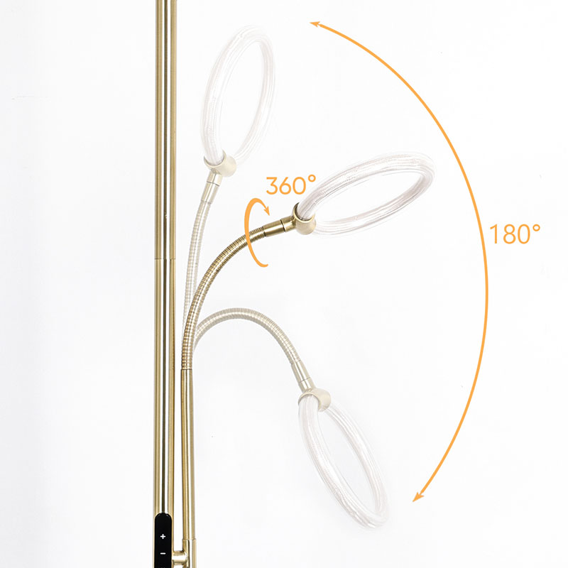 Lyx Guld led golvlampa för vardagsrum är utrustad med avancerad silikonrör 360 graders ljusteknik, som avger ett mjukt och enhetligt ljus, som effektivt lyser upp hela utrymmet. Silikonrör har god flexibilitet och hållbarhet och tål olika miljöförhållanden för att säkerställa stabilitet och säkerhet