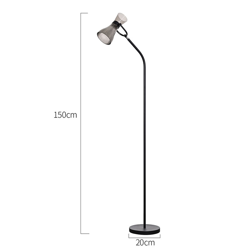 FotdimningsbrytareModern led golvlampa med glasskärm antar ett minimalistiskt designkoncept, med en enkel men stilfull övergripande form. En höjd på 150 centimeter och en basdiameter på 20 centimeter ger den tillräcklig närvaro utan att ta för mycket plats. Metallstången och basen är finpolerade, med en slät och delikat yta,