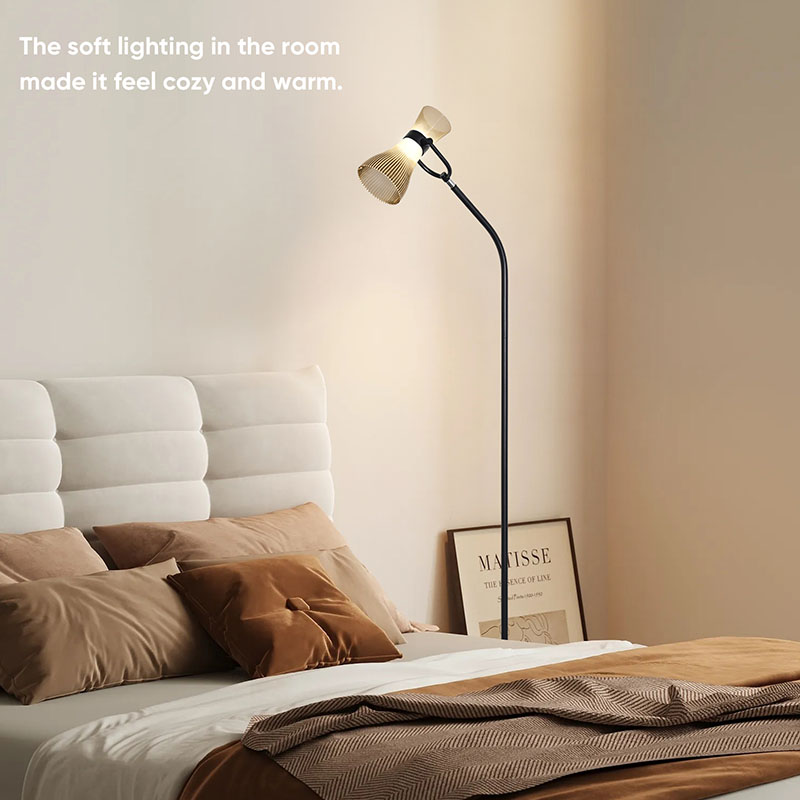 släta och naturliga linjer, som visar upp en ädel och elegant atmosfär. Glasskärmen ger inte bara lampan en transparent och ren textur, utan sprider också effektivt ljuset, vilket gör ljuset mjukare och mer enhetligt. Oavsett om den placeras i vardagsrummet, sovrummet eller arbetsrummet, kan Modern led golvlampa med glasskärm perfekt