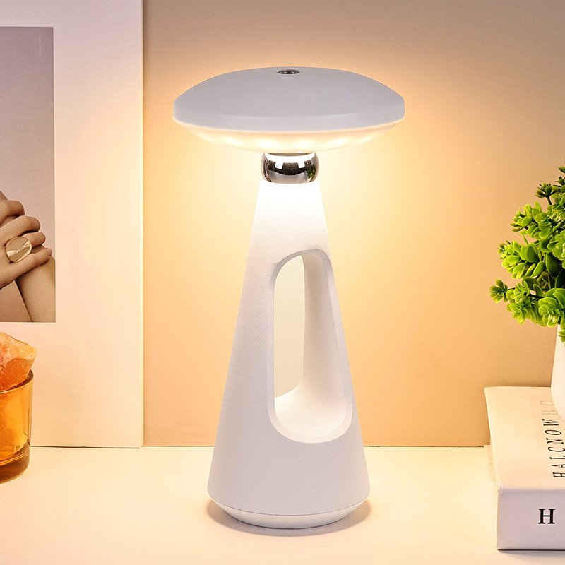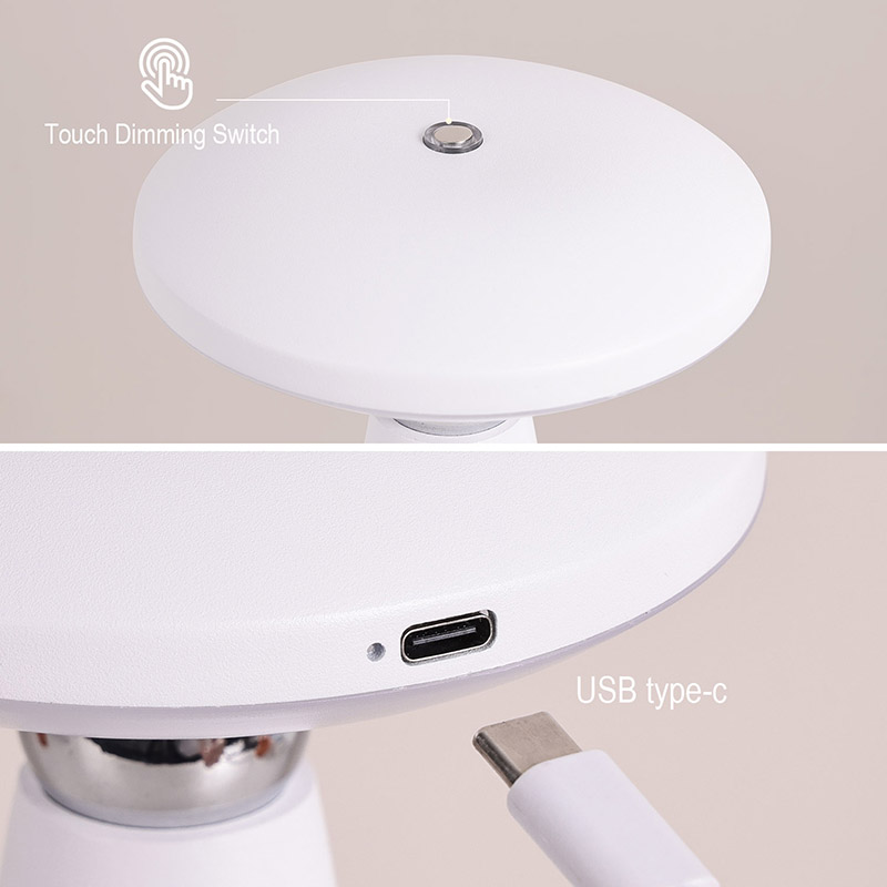 Tryck på DimmerbrytareMushroom LED-bordslampa med uppladdningsbart batteri med sina enkla och släta linjer och ergonomiska form, svampformad design och nålsvansdesign och LED-bordslampa med varmt ljus i metall, är inte bara ett praktiskt belysningsverktyg,