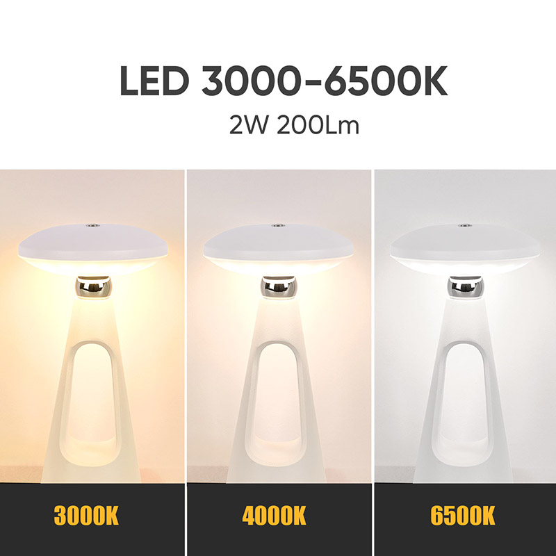 Mushroom LED-bordslampa med uppladdningsbart batteri är utrustad med avancerad LED-ljuskälla, som avger ett mjukt varmt ljus och kan justera ljusets intensitet. Oändlig nedbländning kan effektivt skydda dina ögon. Genom enkla operationer