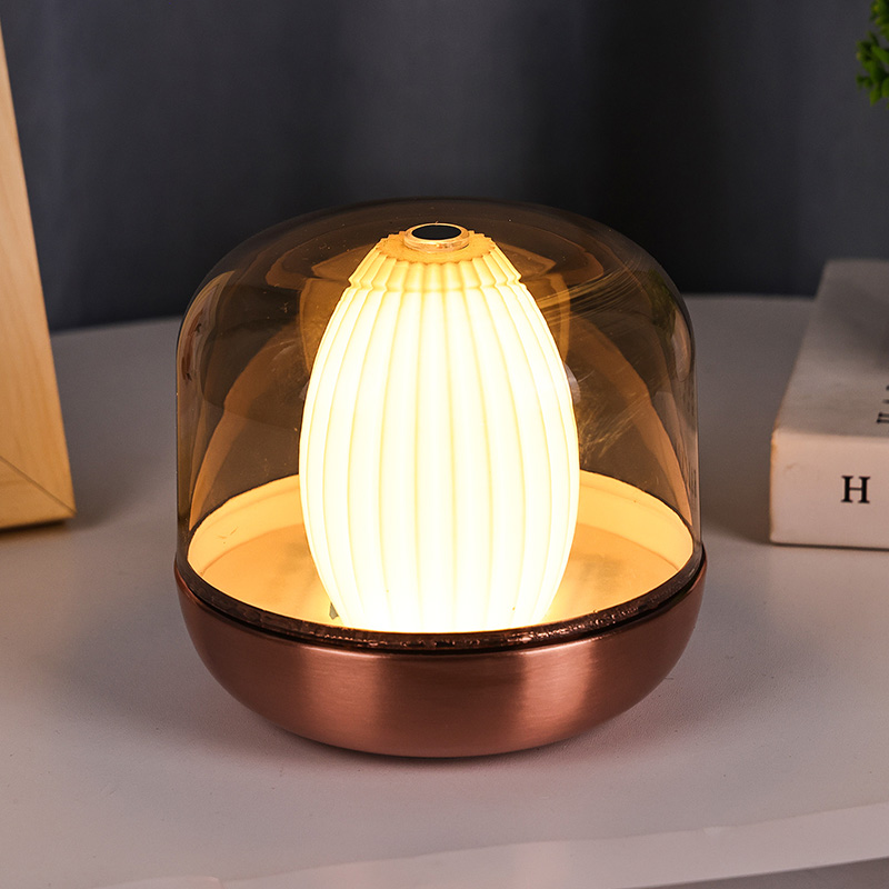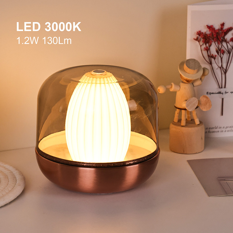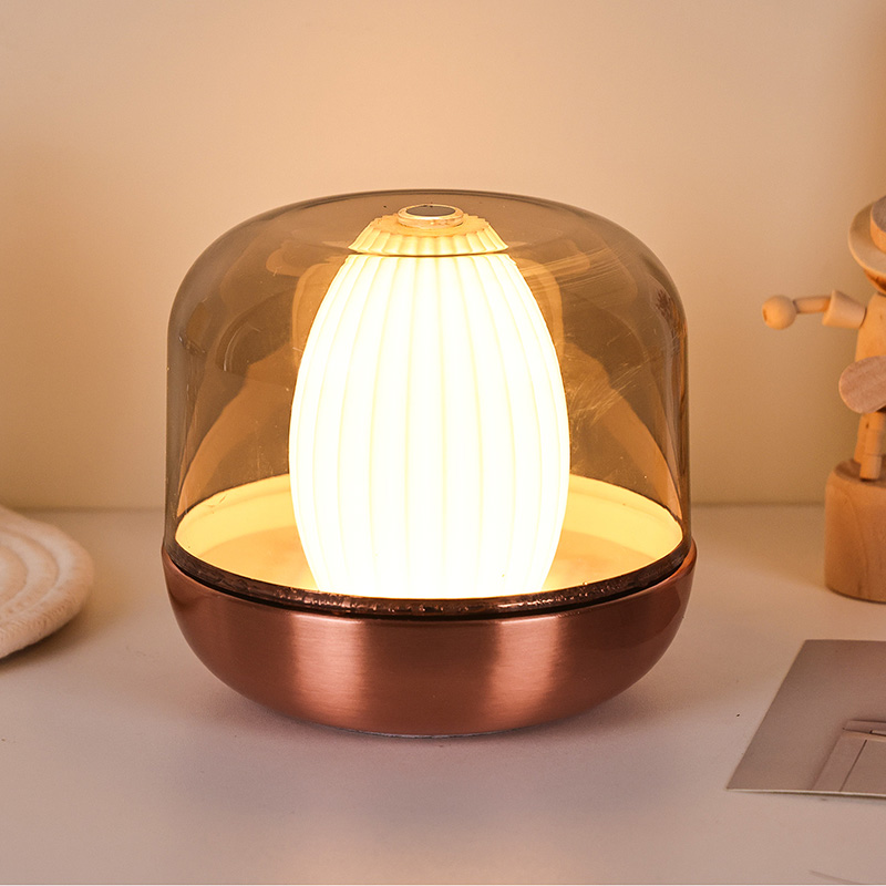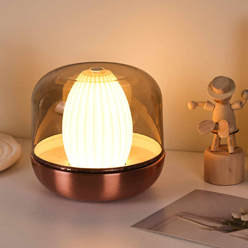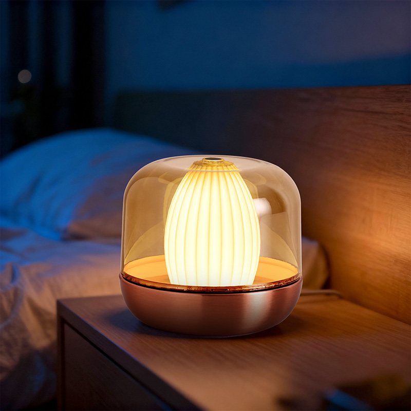 Designinspirationen för denna varma glödande nattlampa härrör från blandningen av natur och arkitektonisk estetik. Med sin rundade och fylliga form liknar den en noggrant snidad bärnstenssten. Placerad på ett skrivbord eller bord blir den utan ansträngning en visuell fokuspunkt. Det yttre lagret har ett högtransparensskydd som inte bara skyddar den interna ljuskällan utan också skapar unika ljus- och skugglager genom brytning, vilket ger en drömlik visuell effekt.