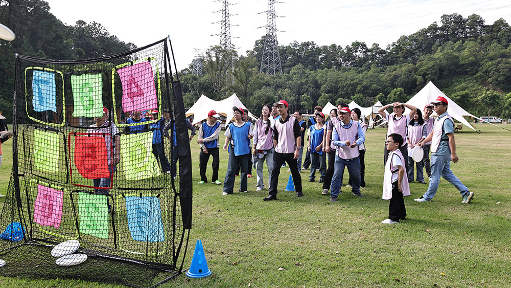 Projekt fem: Frisbee Nine Palace Grid 🥏 Regel: Kasta frisbee på 3 meters avstånd, skjut ner Nine Grid Plate och gör 3 chanser per person. Samla höga poäng för att vinna. Tid: 20 minuter. Höjdpunkt: Precision vs. tur konkurrens!