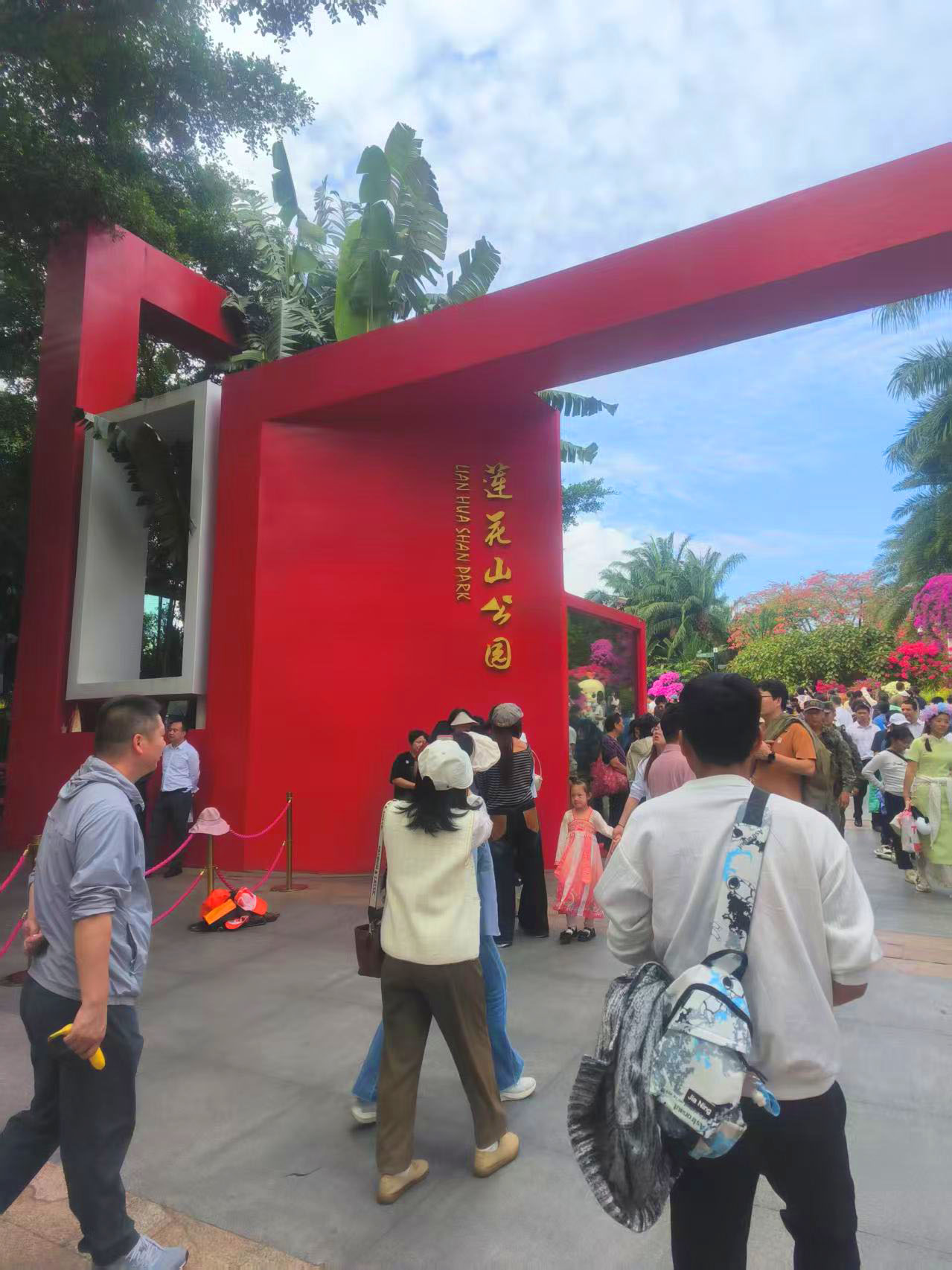 Eftermiddagens resplan: Klättra till Lianhua Mountain i Shenzhen och kör till framkanten av reformer och öppnande - Shenzhen, på väg direkt till Lianhua Mountain Park. I samband med Blomsterfestivalen blommar blommorna som brokad och besökare väver runt.