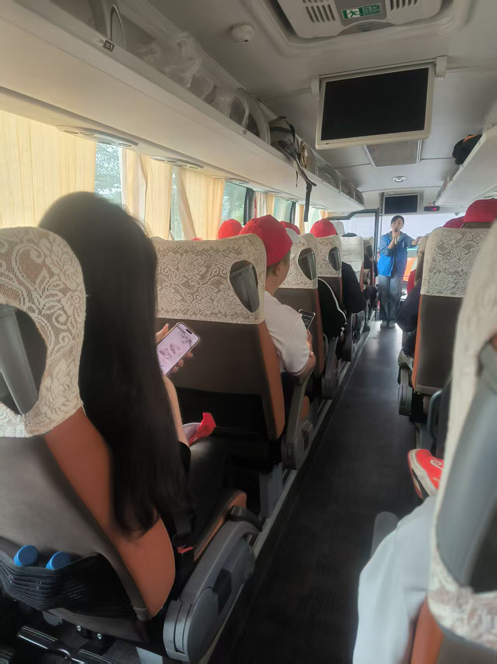 Reseguiden gav en detaljerad introduktion av heldagsresplanen på vägen - på morgonen genomfördes ett teamexpansionsprojekt på Sanzheng Banshan Hot Spring Hotel i Tangxia, och på eftermiddagen åkte de till Lianhua Mountain i Shenzhen för att uppleva andan av reformer och öppnande. Trots det tajta schemat var allas entusiasm hög, med skratt och glädje hela vägen! 🏞️ Första stoppet: Tangxia Sanzheng Banshan Hot Spring Hotel har anlänt till destinationen - den femstjärniga ekologiska resorten "Sanzheng Banshan". Här ger de gröna träden skugga och luften är frisk, som en naturlig syrebar, vilket ger en utmärkt miljö för lagaktiviteter.