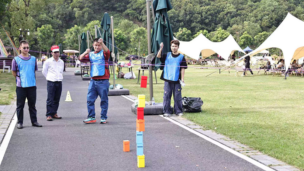 Projekt tre: Bygg ett torn tillsammans 🏗️ Utmaning: Förlita dig enbart på repkontroll, bygg ett högt torn och underhåll det i 5 sekunder utan att kollapsa! Nyckel: Tålamod+noggrannhet+förtroende Tid: 30 minuter