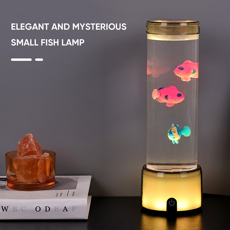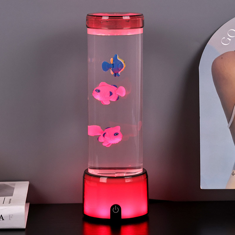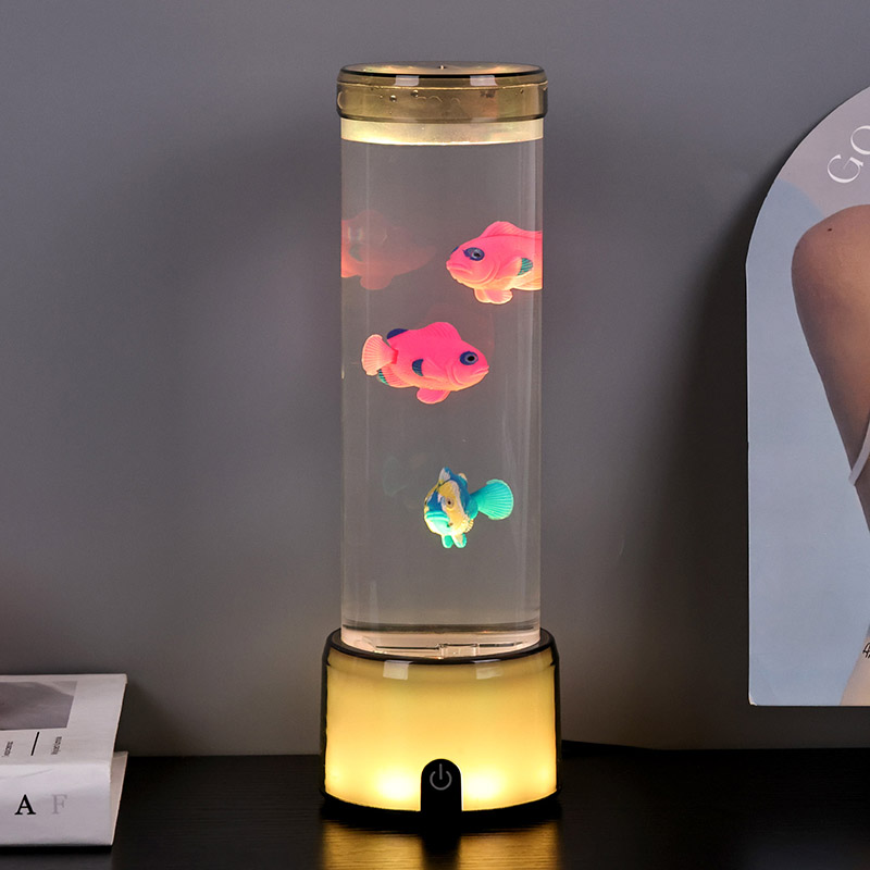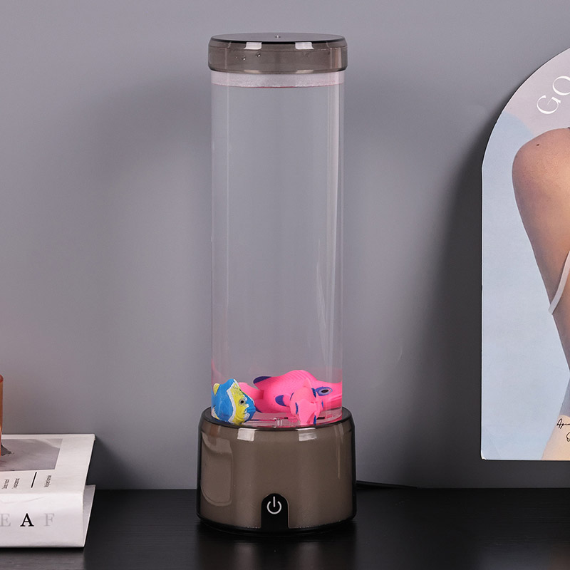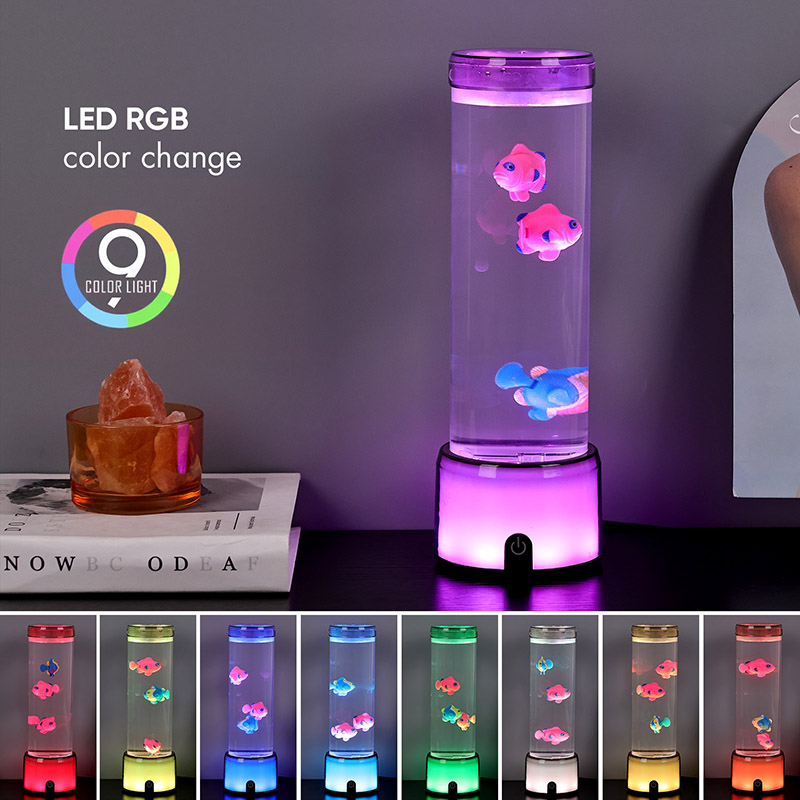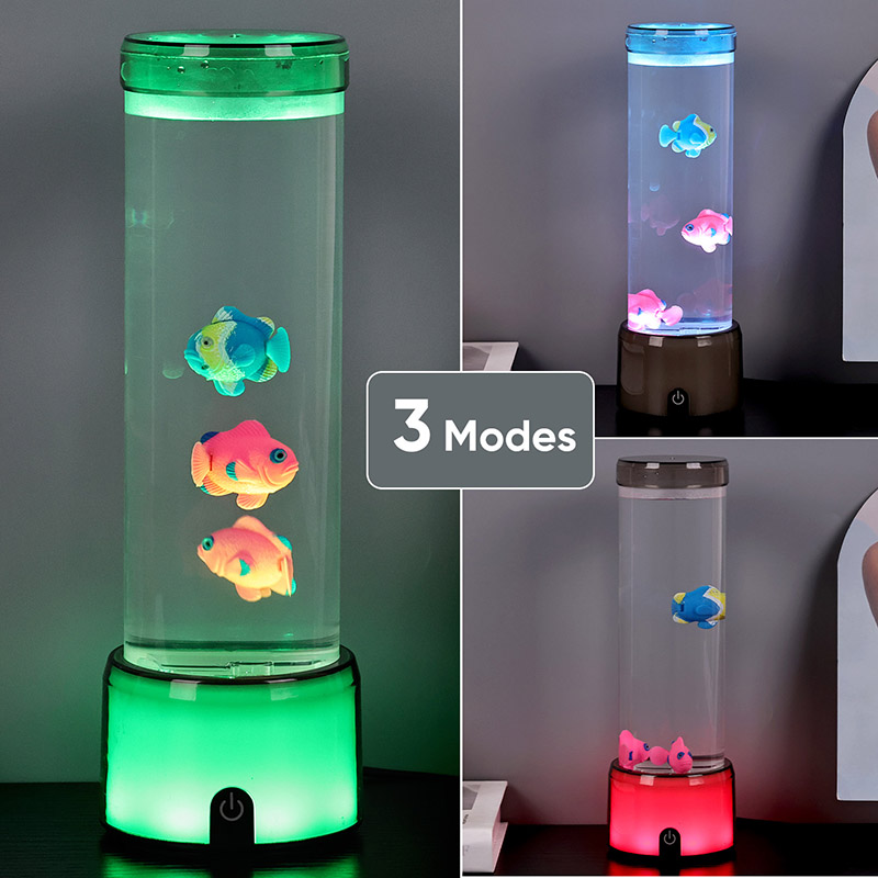 Fisklampans botten är utrustad med en RGB-färgskiftande transparent bas, som kan avge ljus i flera färger, vilket gör att hela lampkroppen har en färgstark effekt. Färg efter att strömbrytaren slagits på