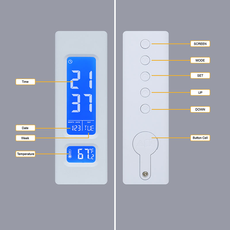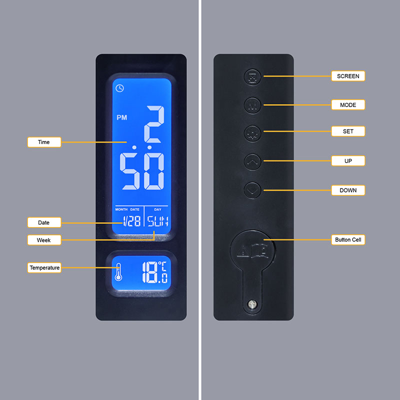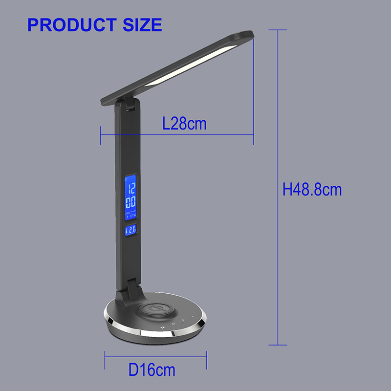 Utöver dess imponerande belysningsfunktioner är denna LED -skrivbordslampa utrustad med en LED -skärm som visar den aktuella temperaturen och en väckarklocka. Säga adjö till fumbling med separata enheter; Med den här lampan har du all väsentlig information i en överblick. Perfekt för att hålla reda på tid och anpassa sig till rumstemperatur förändras enkelt.