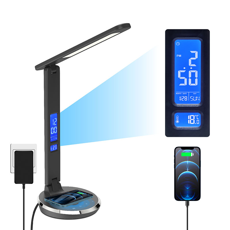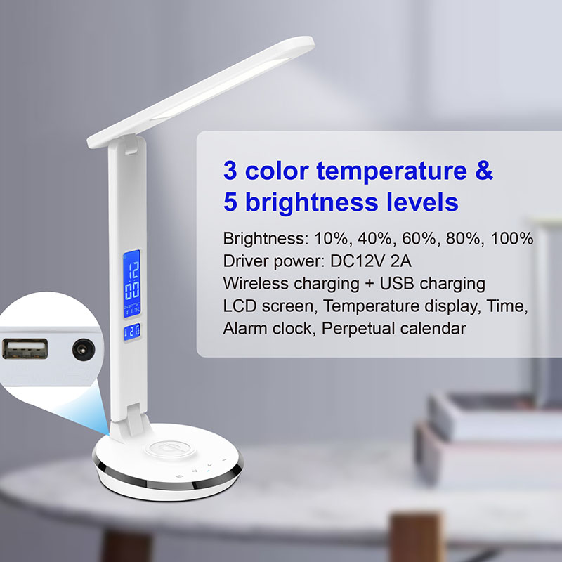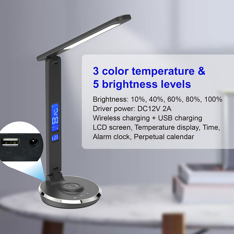 Upplev mångsidigheten hos tre distinkta ljusa färger - varma, naturliga och svala - allt vid en knapptryckning. Oavsett om du arbetar sent på natten och behöver ett skarpt, fokuserat ljus eller avkopplat med en bra bok och föredrar en mjukare, varmare glöd, anpassar vår Qi LED -skrivbordslampa med trådlös laddare sömlöst efter dina behov. Dessutom har varje färginställning fyra justerbara ljusstyrkningsnivåer, vilket säkerställer perfekt belysning för alla uppgifter eller humör.