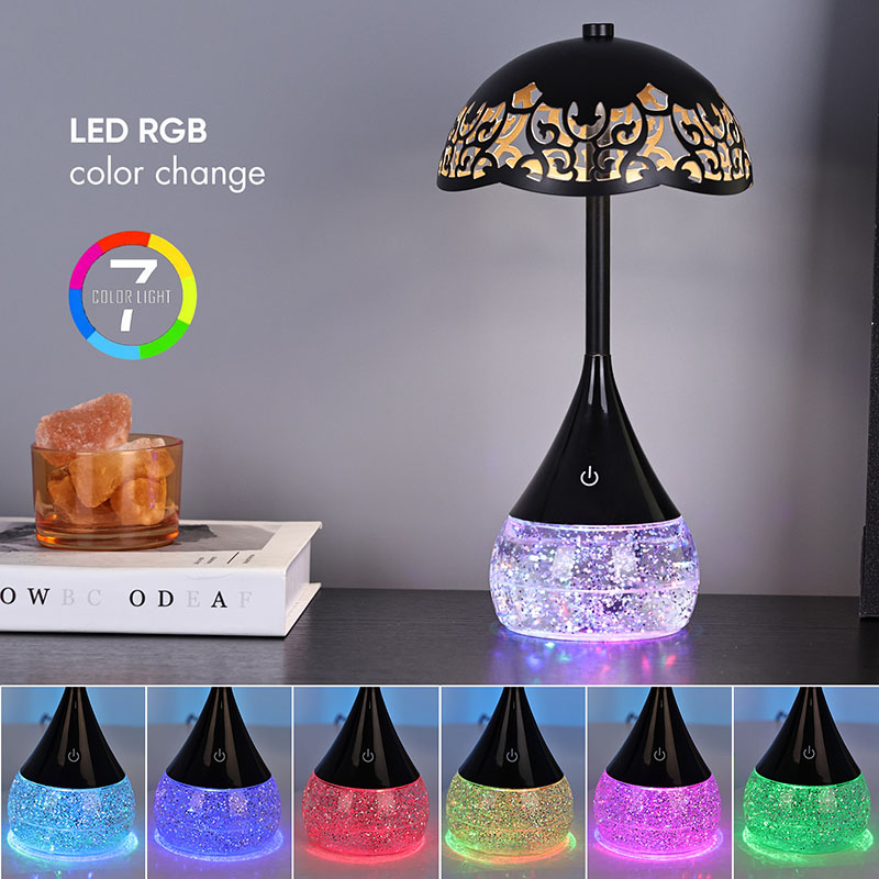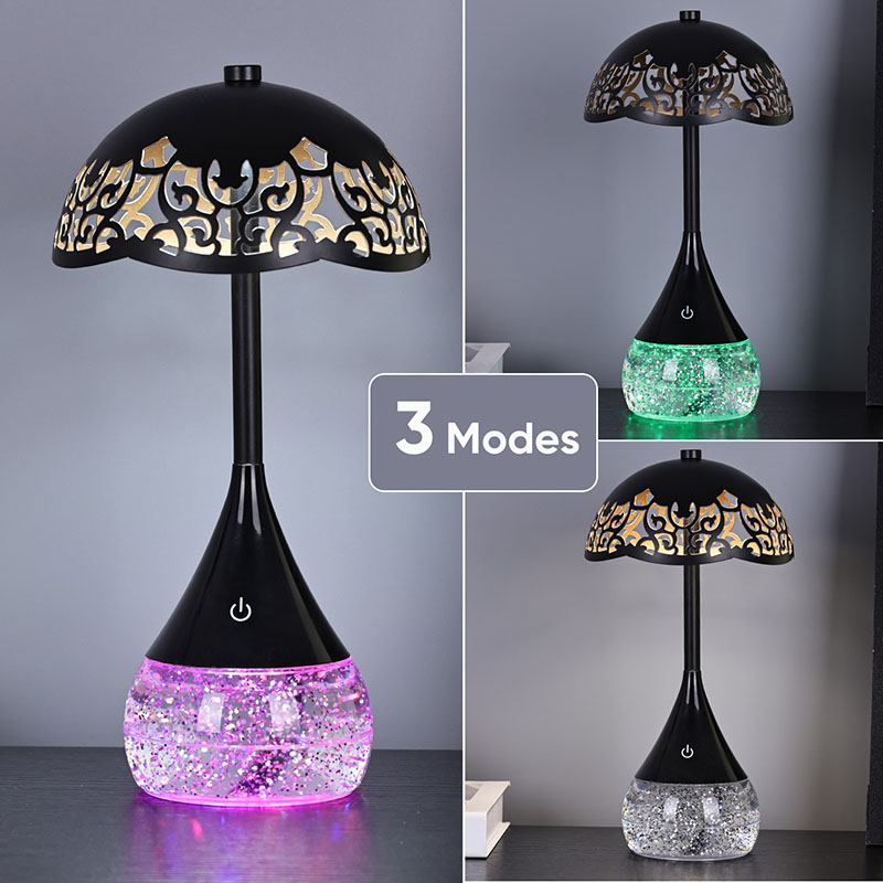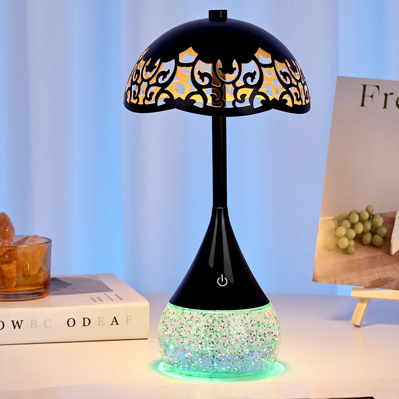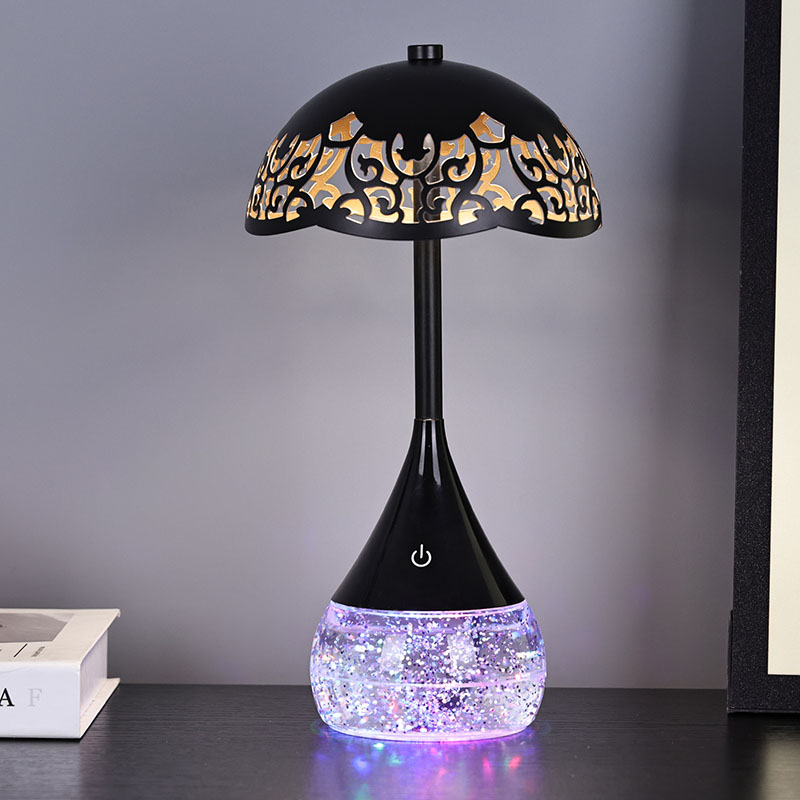 Inuti basen har en klar flaska en vätska som rör sig oregelbundet, vilket skapar en fängslande visuell effekt. RGB Color Base LED -skrivbordslampa med paraplyform är inte någon vanlig vätska; Det har varit speciellt formulerat för att skapa en fascinerande dans av skimmer och virvel. När vätskan rör sig återspeglar den ljus i ett ständigt föränderligt mönster och skapar en ständigt utvecklande visuell upplevelse.