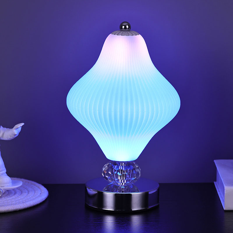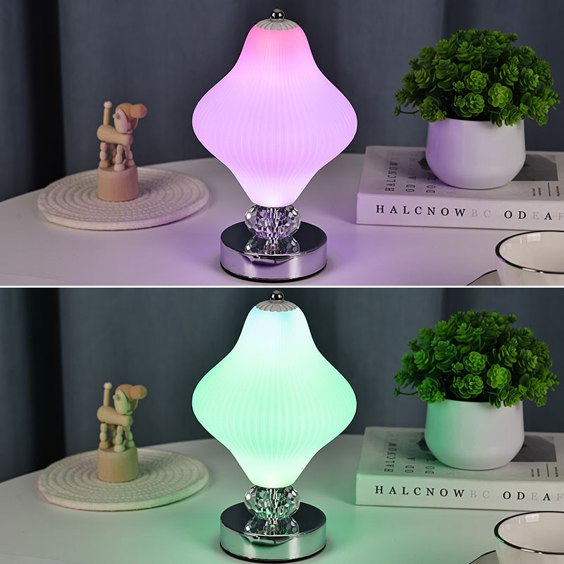 RGB färgbytesbordslampa för sladdlös är tillverkad av högkvalitativa plast- och metallmaterial, med god stabilitet och hållbarhet. Plastlampskärmen är finpolerad och behandlad, med en slät och delikat yta och en mjuk lyster. Metallbasen ger lampan en stabil och ädel struktur, vilket gör den mer stabil och pålitlig under användning.