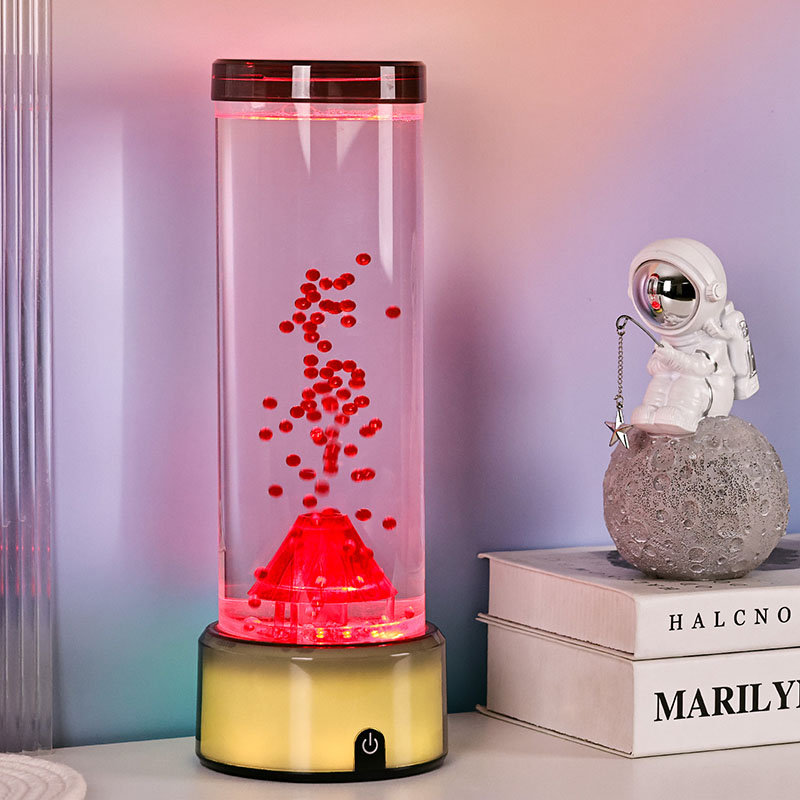 2. Nattlampa i sovrummet För barn ger den milda glöden och den lugnande rörelsen komfort och säkerhet under natten. Den lugnande effekten av de flödande partiklarna och skiftande färger kan hjälpa till att lindra ångest och främja bättre sömn. Föräldrar uppskattar dess säkerhetsfunktioner och förmåga att fungera som ett roligt pedagogiskt verktyg om vulkaner och havets liv.