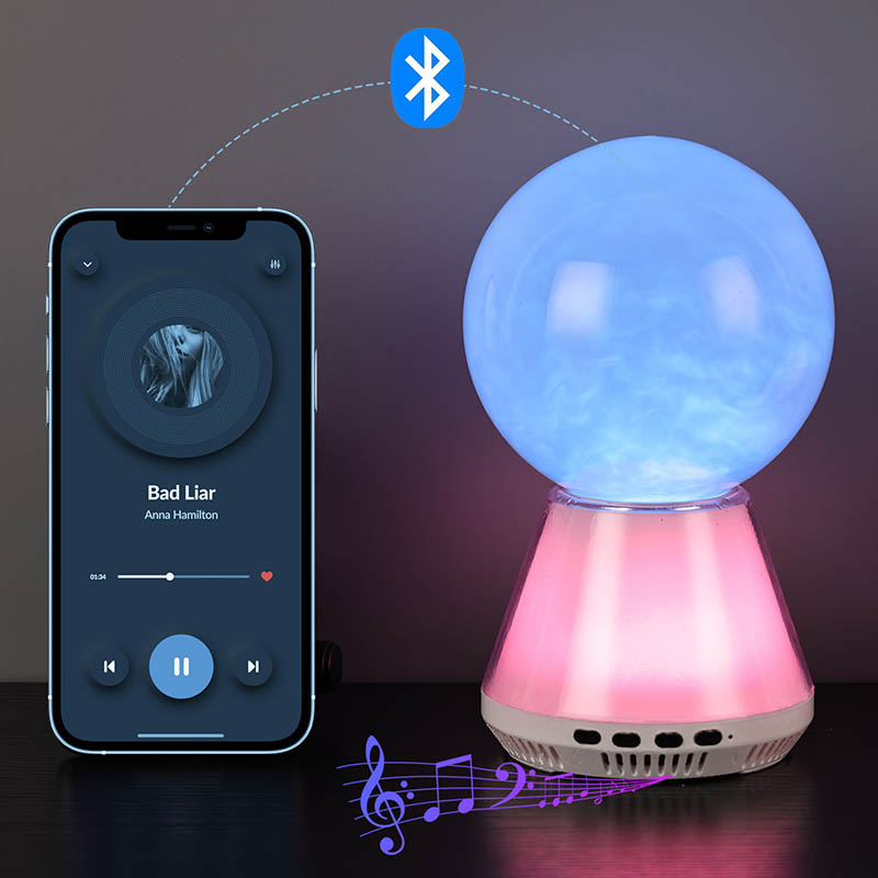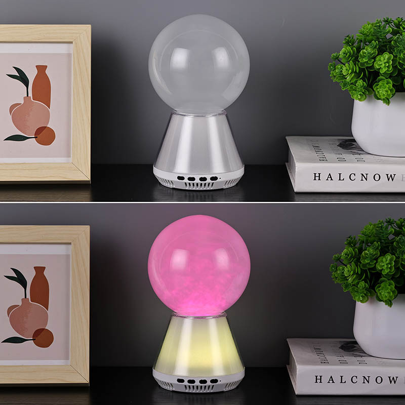 RGB LED-glitterlampa med bluetooth-kontroll som kombinerar flödet av vätska i en glaskula till ett molnliknande tillstånd, synkroniserade färgskiftningar mellan basen och vätskan, och Bluetooth-anslutning för att spela musik, är designad för att skapa en drömsk värld för dig. RGB LED-glitterlampa med bluetooth-kontroll är inte bara en praktisk nattlampa, utan också ett magiskt konstverk.