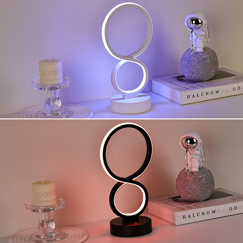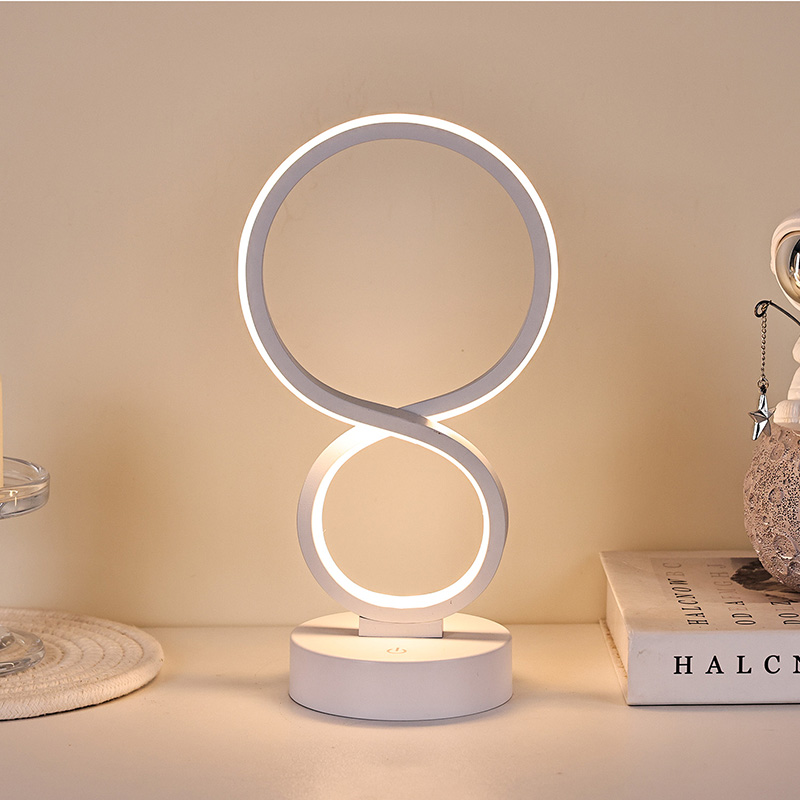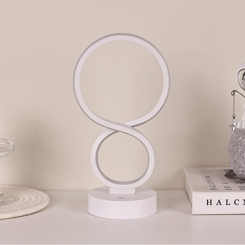 Inspirerade av symbolen för oändlighet, som symboliserar skönheten i evigheten och cirkulationen, skisserar de släta linjerna en elegant 8-formad siluett. Kombinationen av metall och högkvalitativ plast skapar en delikat textur med varma tentakler. Oavsett om det placeras i sovrummet, sängkanten, skrivbordshörnan eller vardagsrumshörnan, är det ett slående landskap som lägger till en modern konstnärlig atmosfär till hemmet