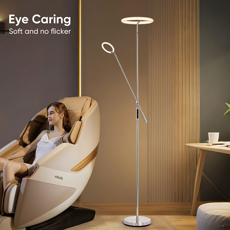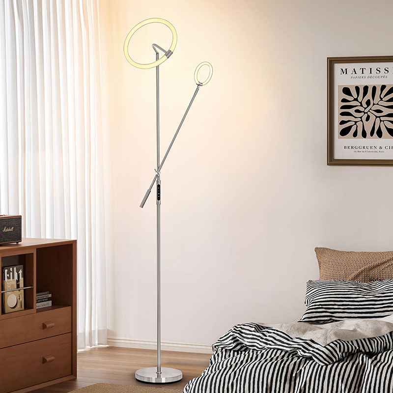 Den miljömässiga ljusdesignen ger inte bara lamporna en unik visuell effekt, utan sprider också effektivt ljuset, vilket gör ljuset mjukare och mer enhetligt. Lyktstolpen och sockeln på denna golvlampa har finpolerats och behandlats, med en slät och delikat yta och bekväm handkänsla,