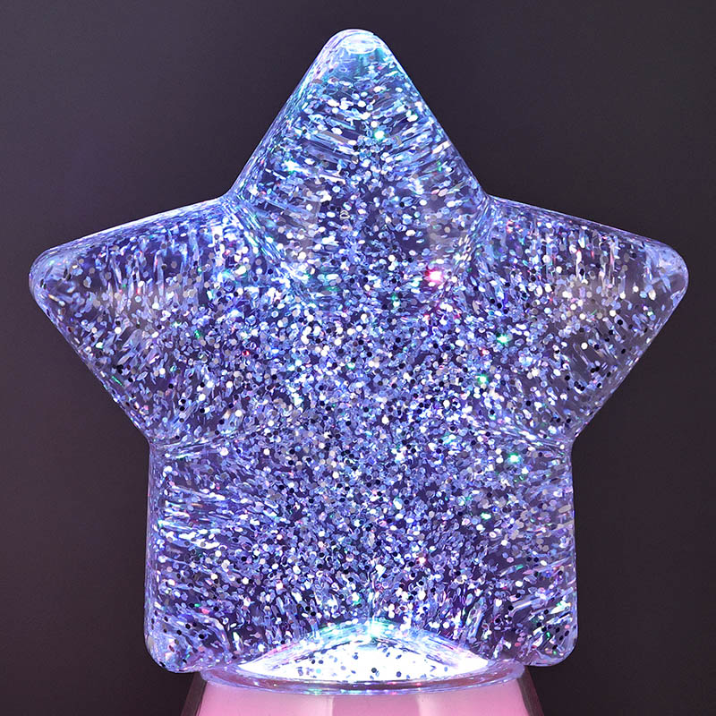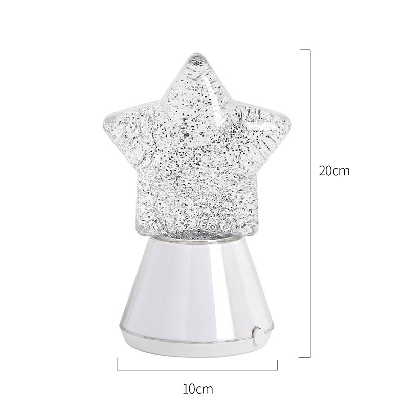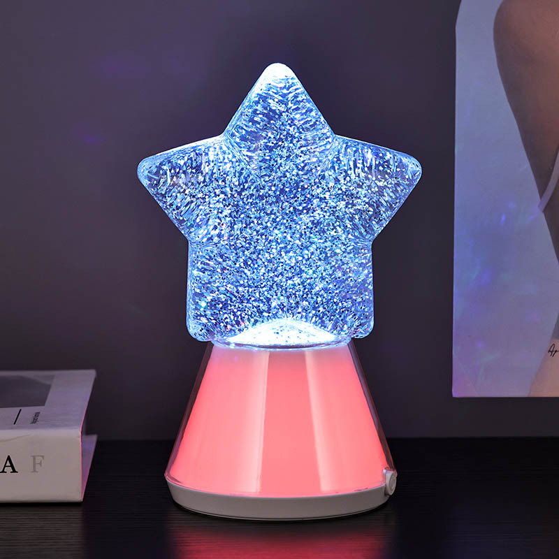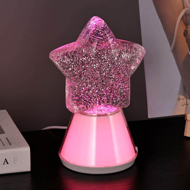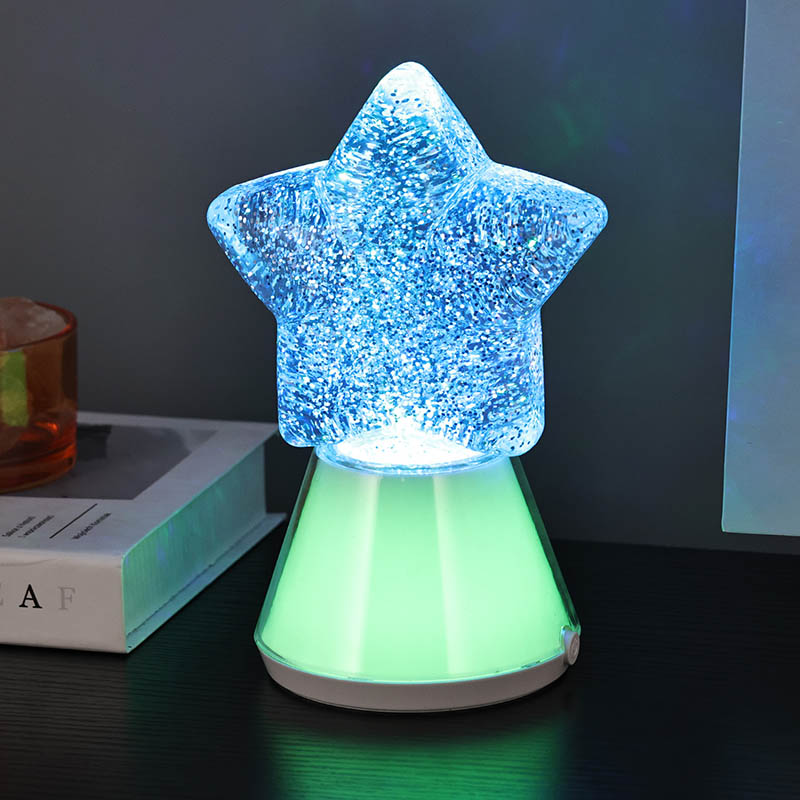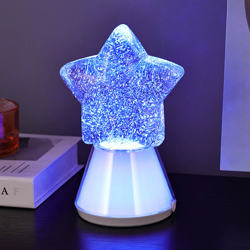 Nattens magi med vår stjärnklara nattdekorativa lampa har en fantastisk stjärnformad design som fångar essensen av himmelsk skönhet. Denna lampa är utformad från högkvalitativa material och har en bas gjord av transparent plast som ändrar färg i synkronisering med de interna RGB LED-lamporna. Stjärnan i sig är fylld med skimrande glitterpartiklar suspenderade i vätska, vilket skapar en fängslande visuell effekt när lampan tänds. När färgerna cyklar genom ett spektrum av livliga nyanser dansar glitteret inuti och kastar ett kalejdoskop av blinkande lampor som gör att du förtrollar dig.