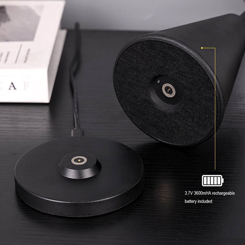 Kärnan i lampans design är dess kompakta och bärbara karaktär. Stående på en höjd av 25,5 cm med en diameter på 13,5 cm, passar den perfekt på alla skrivbord, bord eller hyllor utan att ta för mycket plats. Lampans lätta och robusta bas säkerställer stabilitet och förhindrar att den tippar, vilket gör den säker att använda i alla rum. Oavsett om du ska möblera en liten lägenhet eller ett rymligt hem är denna lampa det perfekta valet.